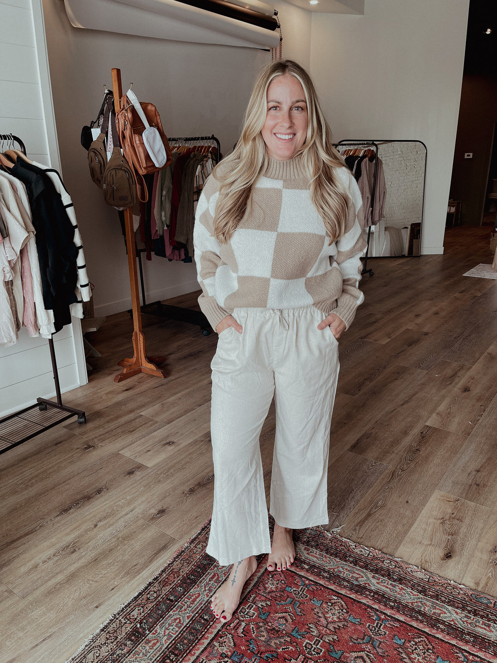 Solid Crewneck Short Sleeve Sweater- Taupe