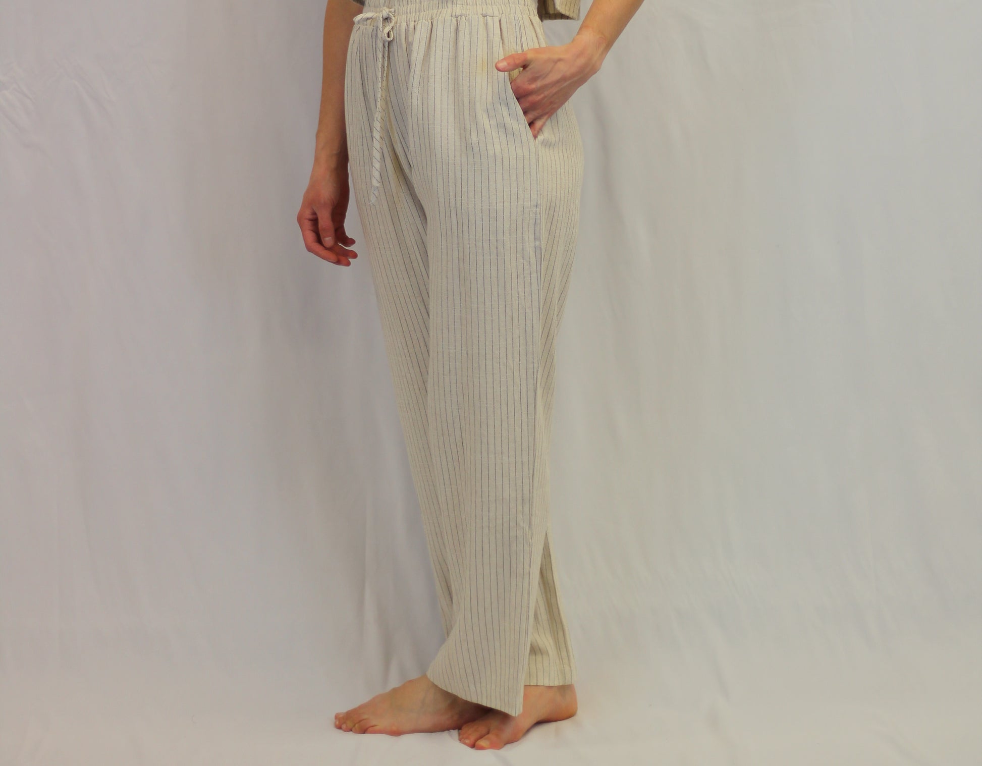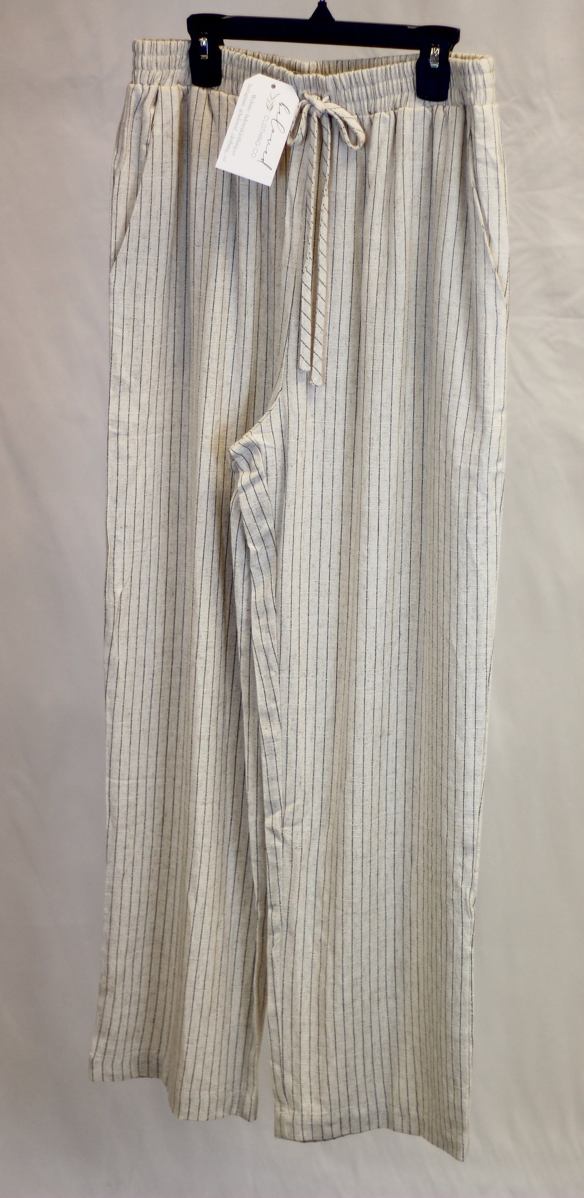 "Aspen" Pinstripe Drawstring Straight Leg Linen Pants