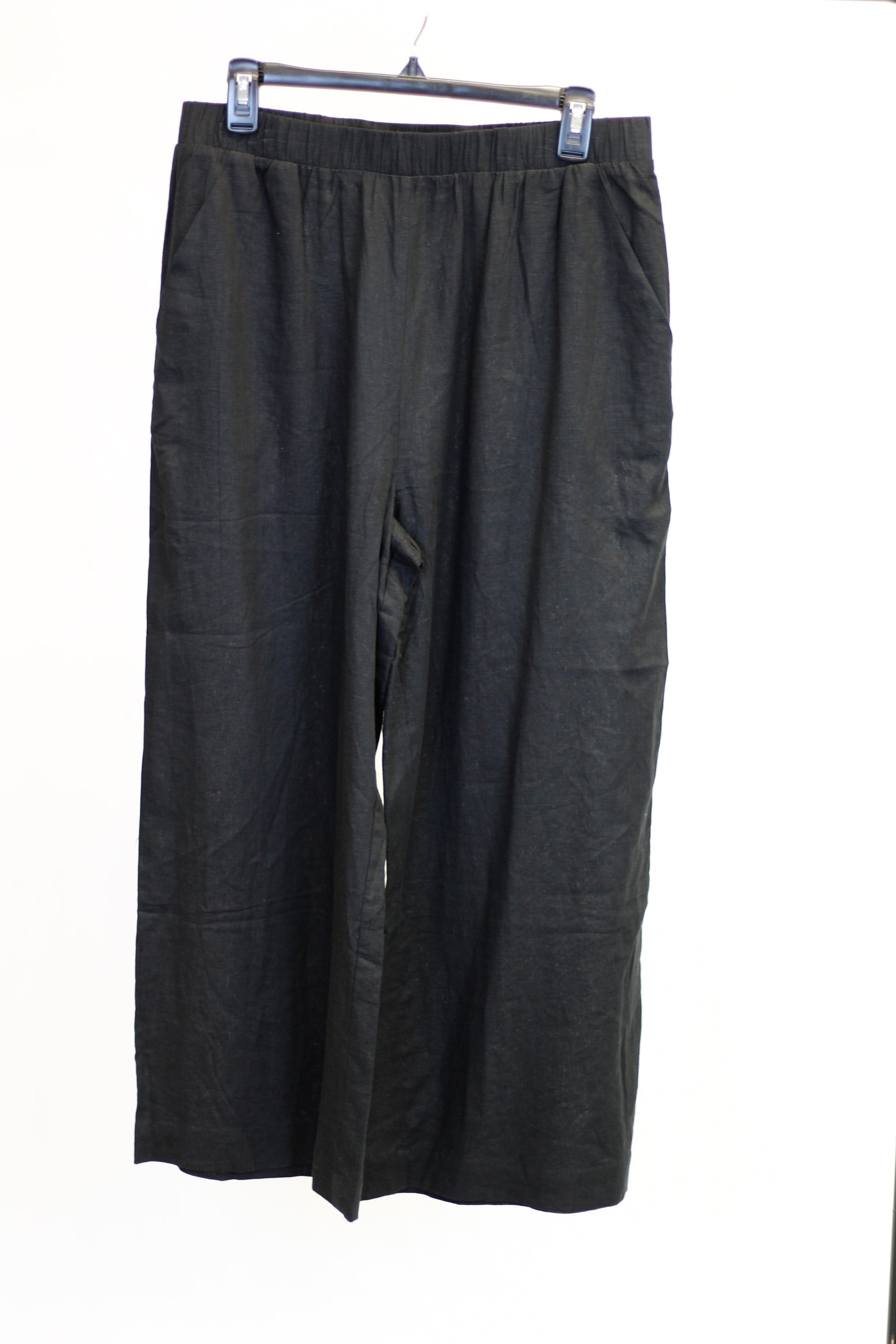 Black Linen Blend Straight Leg Bottoms