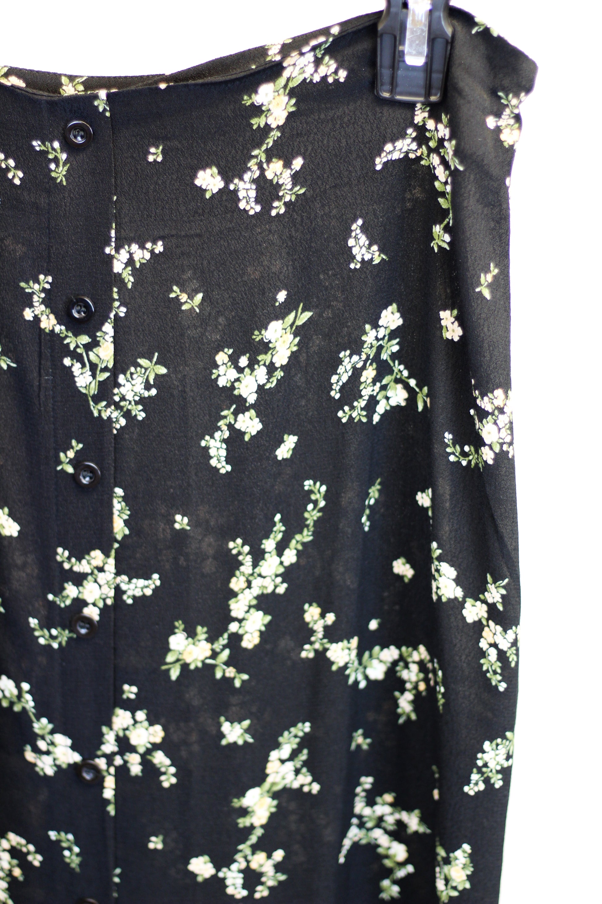 Get ready to turn heads in our Floral Button Down Midi Skirt! This versatile skirt features a side invisible zipper with hook & eye closure, functional buttons, and a beautiful floral pattern. Made with 100% rayon, it's lightweight and perfect for any occasion.