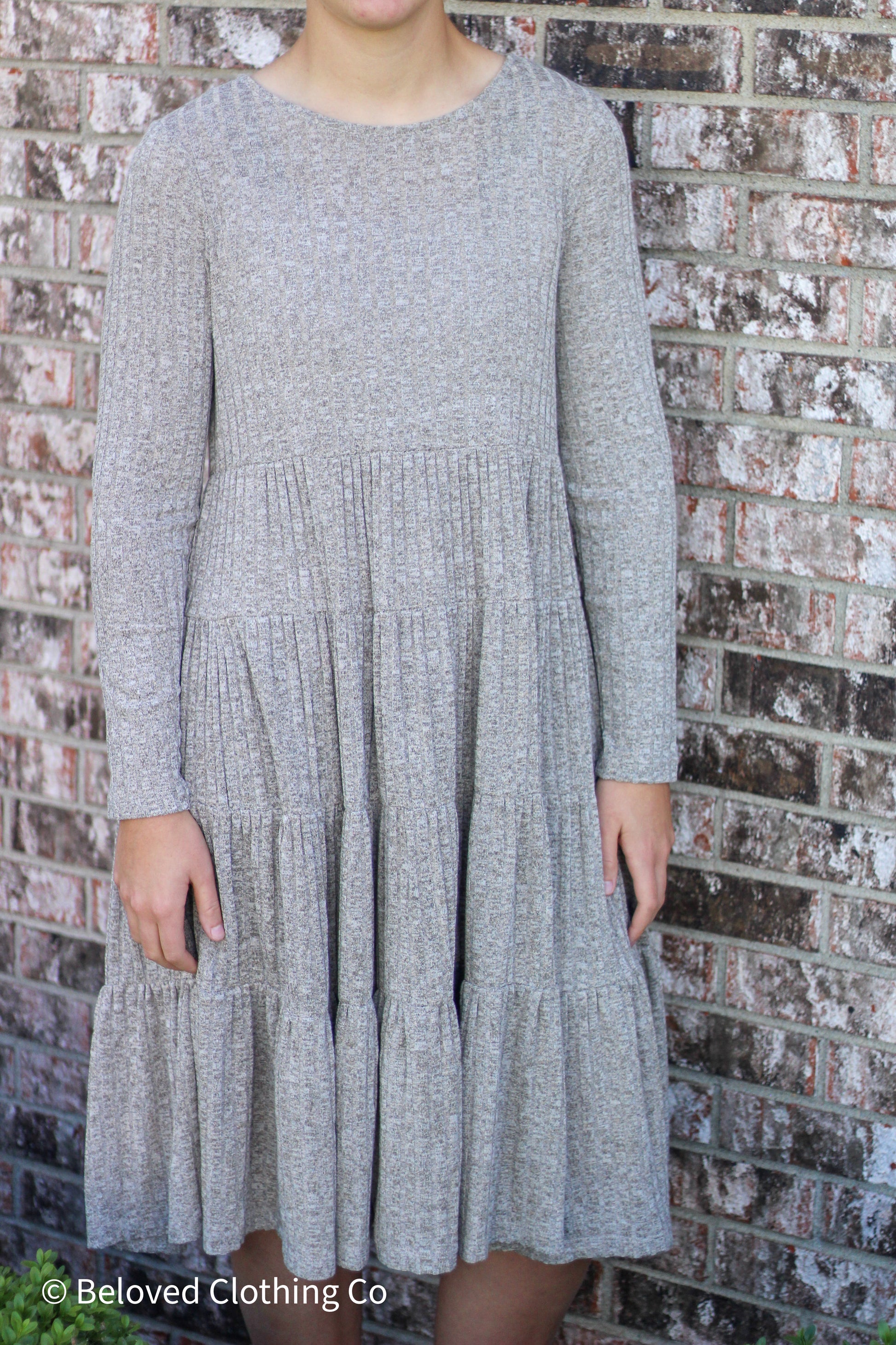 Ribbed Long Sleeve Sweater Tiered Midi Dress