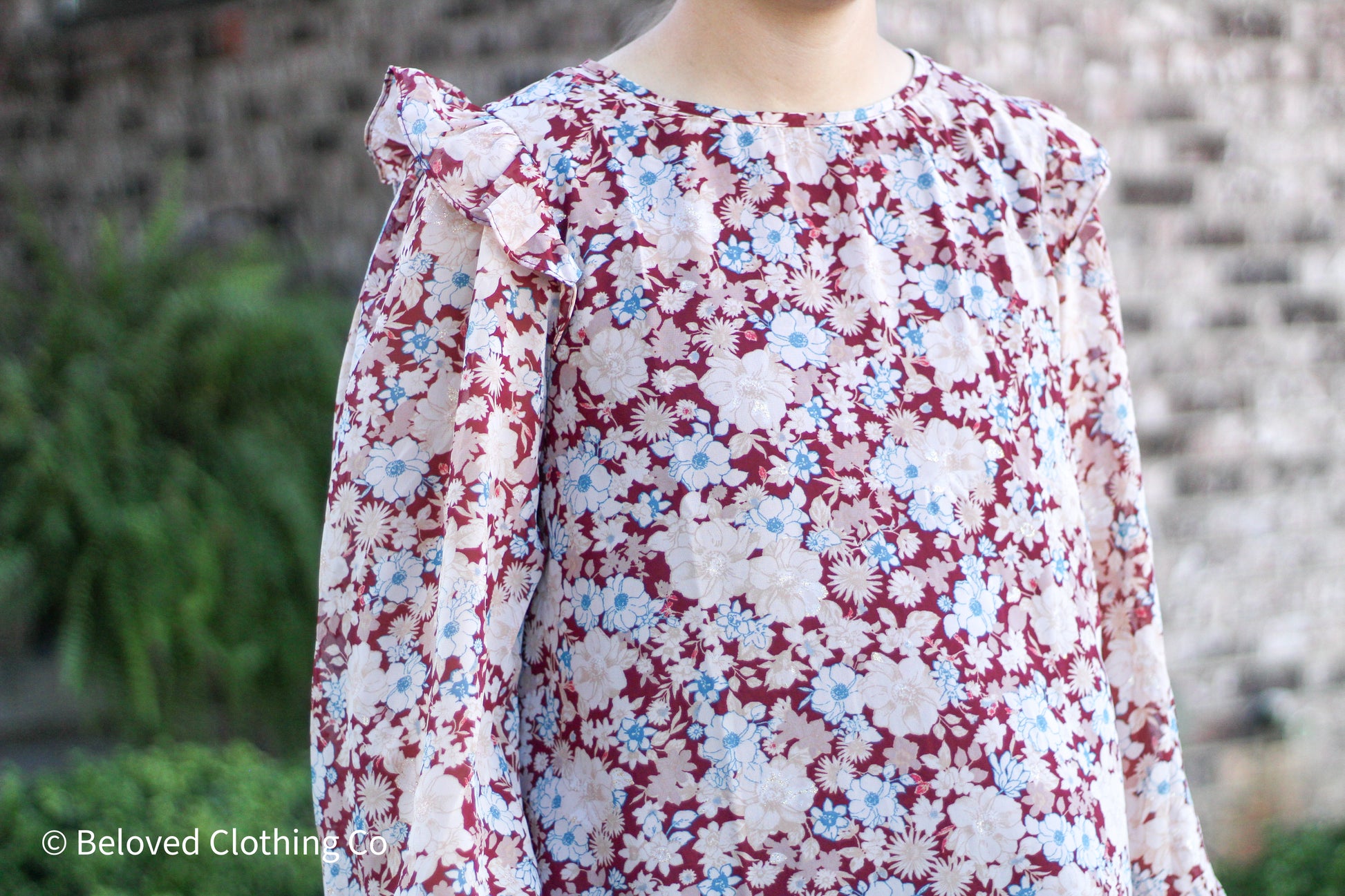 Elevate your look with the Ruffled Shoulder Woven Top, a dressy blouse designed with a soft lining for all-day comfort. Its flowy sleeves feature charming ruffle details on the shoulders, while a subtle sparkle adds a hint of shine. The colors in this top are stunning and it would pair beautifully with a pencil skirt for a formal event, or jeans for a chic date night look.