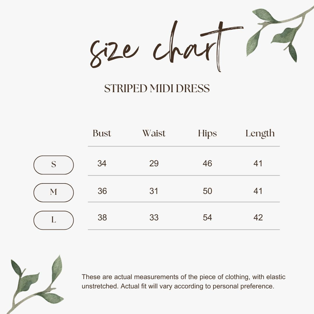 This striped midi dress combines comfort and style with its soft knit fabric and flattering length just below the knees. Thoughtfully designed with functional wood buttons and practical pockets, it offers both elegance and everyday convenience. Ideal for those seeking a polished yet relaxed look.