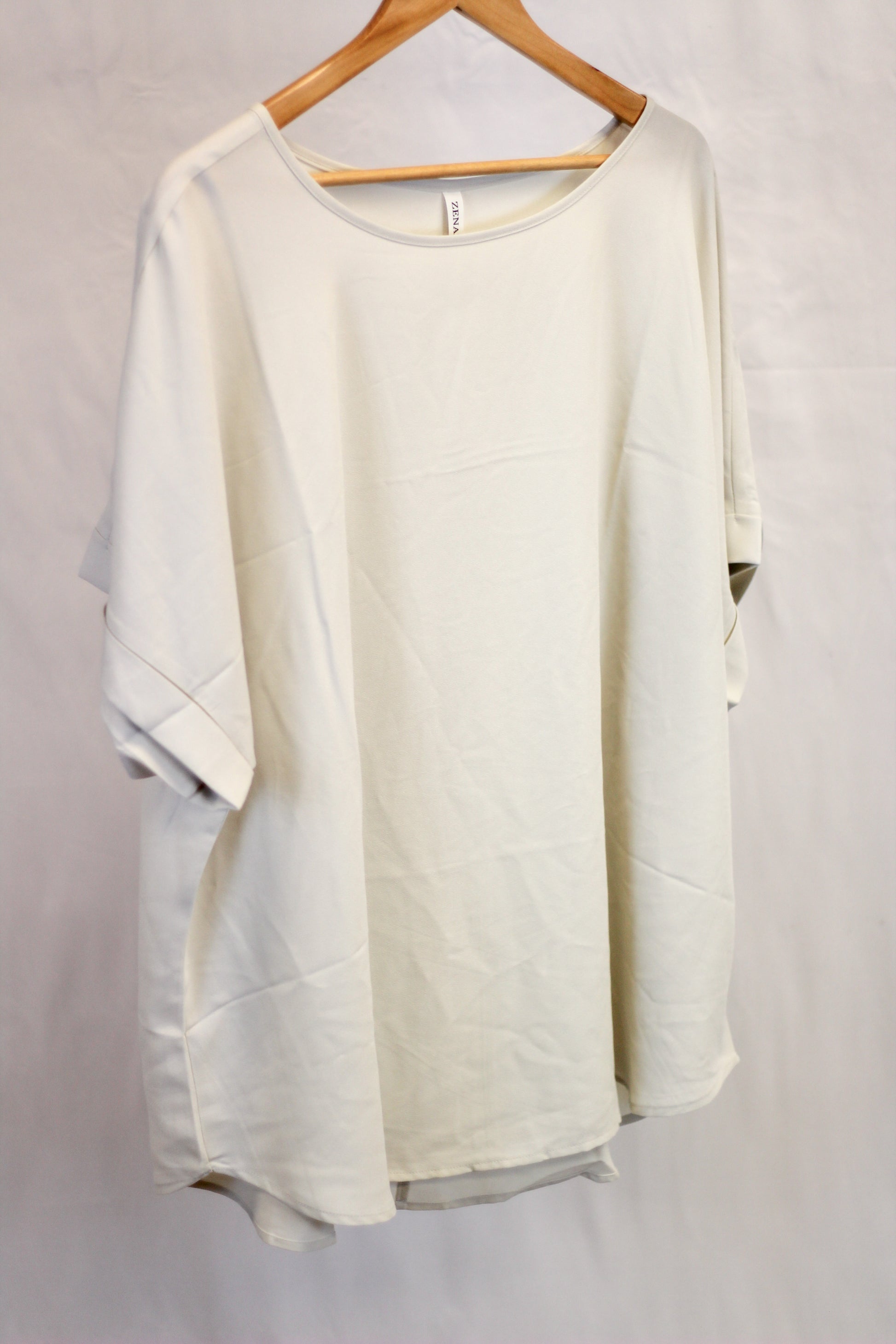 Introducing the Woven Drop Tee in dove grey - the perfect blend of comfort and style. Made a with dressy blouse material, this loose fit plus size top is both comfortable and stylish, making it the perfect addition to any wardrobe.
