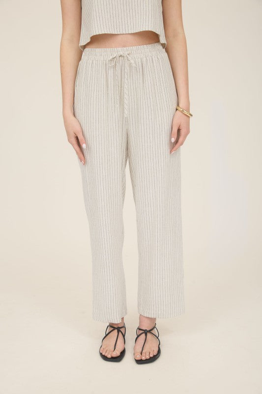 "Aspen" Pinstripe Drawstring Straight Leg Linen Pants