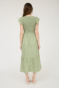 Elevate your style with our Embroidered Flower Smocked Ruffle Midi Dress. The V neckline and ruffle details add a touch of femininity, while the embroidered floral print adds a pop of color. With a lined and comfortable fit, this midi dress is perfect for any occasion. Made from 100% polyester.